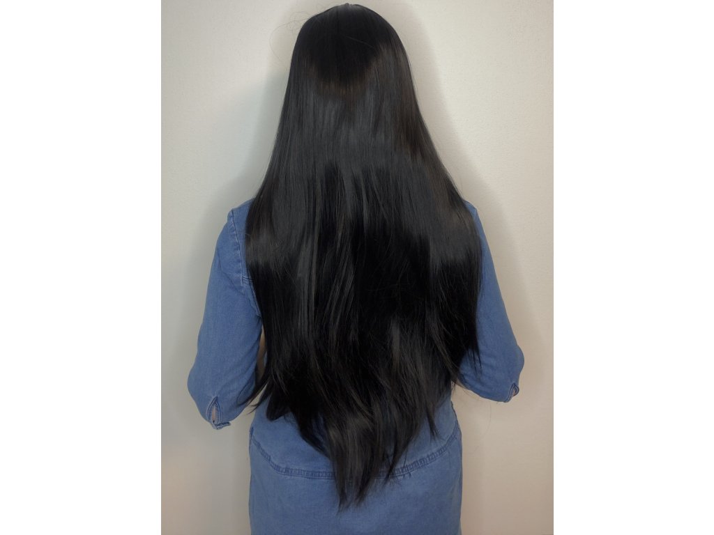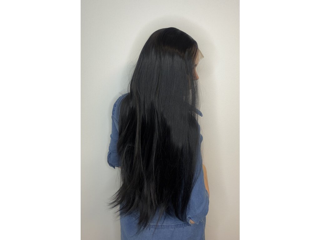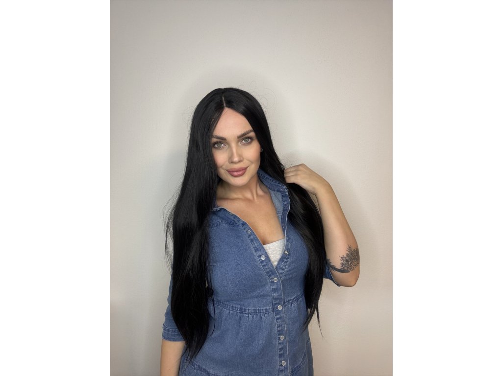 Vlasy sú vyrobené z kvalitného umelého vlákna. Parochňa s dlhými rovnými vlasmi a v krásnej žiarivo čiernej farbe.