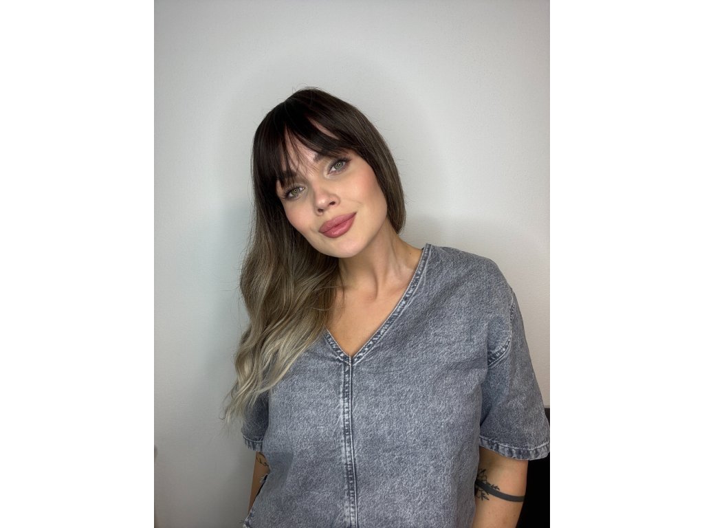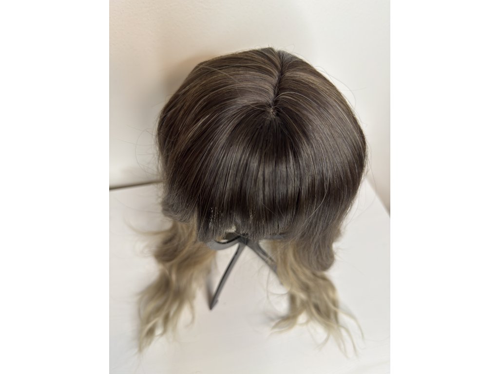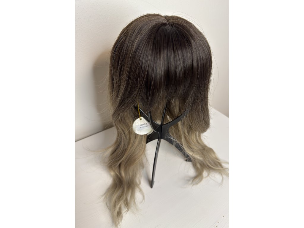 Krásna vlnitá ombré parochňa s ofinou. Čokoládovohnedé korienky prechádzajúce do blond dĺžok. Je vyrobená z kvalitného syntetického vlákna, ktoré je veľmi príjemné na dotyk a jemnosťou pripomína ľudské vlasy.