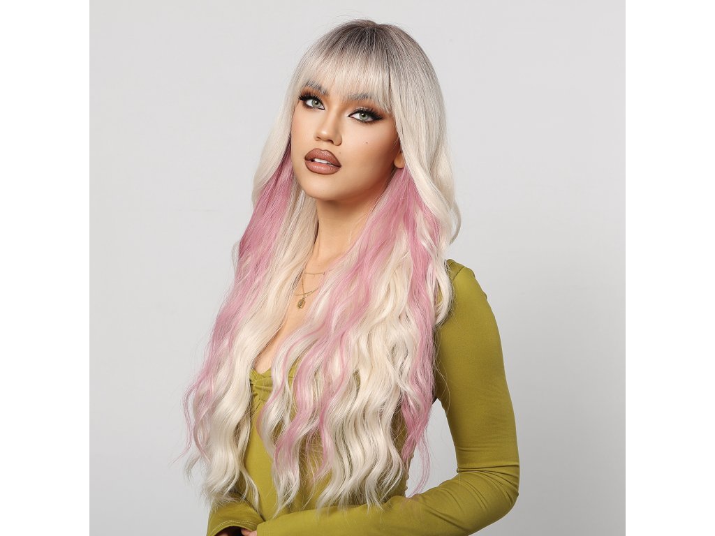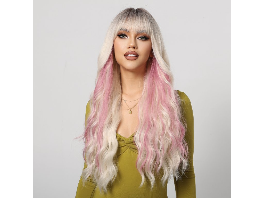 Parochňa Elysia ponúka jemné spojenie svetlej blond farby s ružovými akcentmi, ktoré vytvárajú nádych romantiky a modernej elegancie, čo z nej robí jedinečný doplnok k vášmu štýlu. Rovná ofina krásne rámuje tvár, čím pridáva účesu mladistvosť a sviežosť, zatiaľ čo dlhé vlnité pramene dodávajú objem a ľahkosť, čo je ideálne na rôzne príležitosti. Ružové tóny v kombinácii s blond farbou pôsobia hravo, ale napriek tomu decentne, čo zaisťuje univerzálne použitie tejto parochne. Elysia je tak dokonalým výberom pre každého, kto chce vyčnievať z radu a zachovať si jemnú eleganciu. Je vhodná ako na večerné udalosti, fotenie, tak aj na každodenné nosenie. Parochňa podčiarkne vašu originalitu a dodá vám sebavedomý a prirodzený vzhľad.