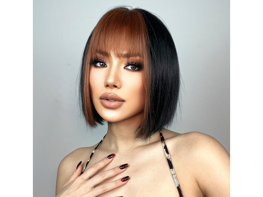 Táto elegantná parochňa spája havraní čierny základ s jemnými svetlohnedými pramienkami okolo tváre, ktoré účesu dodávajú hĺbku a sofistikovaný kontrast. Eleganciu dopĺňa hnedá rovná ofina. Krátky bob strih s ostrými líniami je perfektnou voľbou pre moderný a sebavedomý vzhľad. Rovná ofina a precízne urobená stredová cestička vytvárajú harmonicky upravený efekt. Vysokokvalitné syntetické vlákna vyzerajú ako skutočné vlasy a sú odolné proti teplu, čo umožňuje jednoduchý styling. Táto parochňa je ideálna ako na každodenné nosenie, tak aj na špeciálne príležitosti, keď chcete vyniknúť. Naomi prináša klasiku s dotykom elegancie.