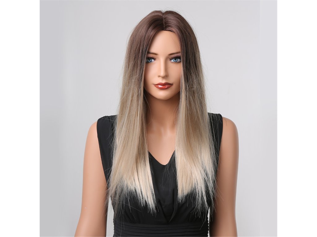Krásna parochňa v hnedej ombré farbe. Dlhé a rovné vlasy. Je vyrobená z kvalitného syntetického vlákna, ktoré je veľmi príjemné na dotyk a jemnosťou pripomína ľudské vlasy.