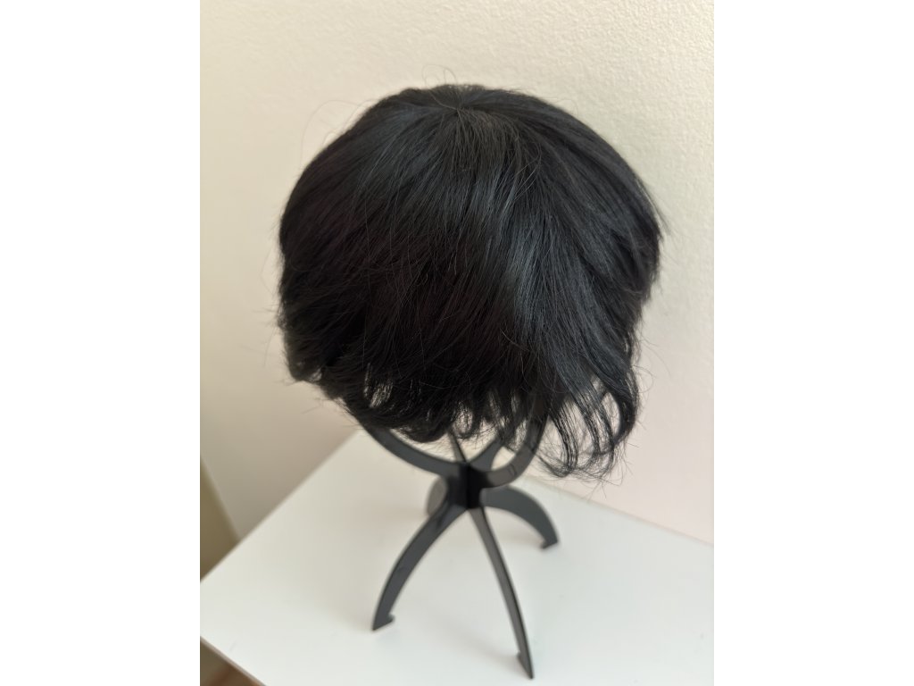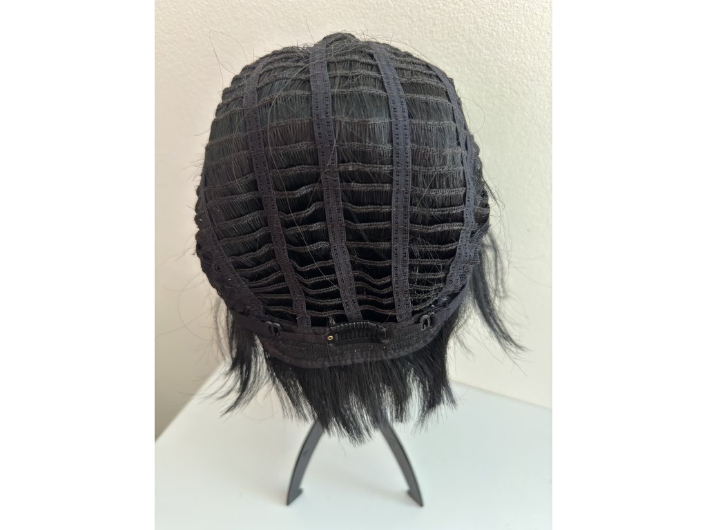 Krátka čiernohnedá parochňa Brenna z pravých a umelých vlasov