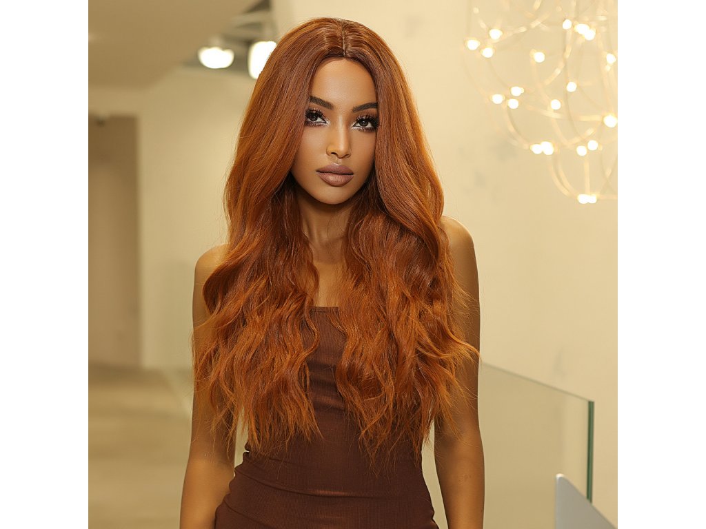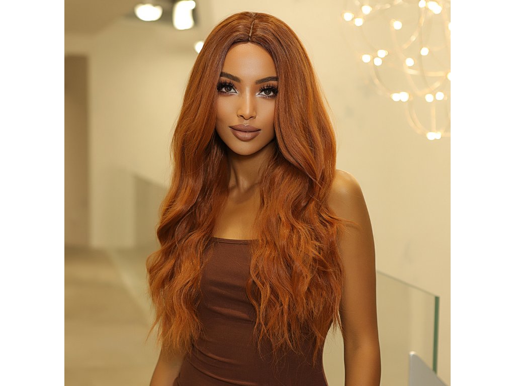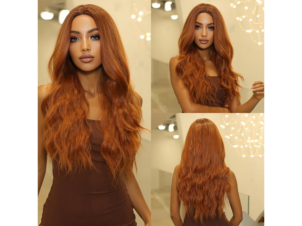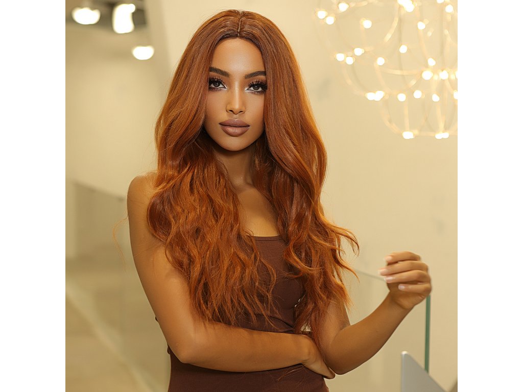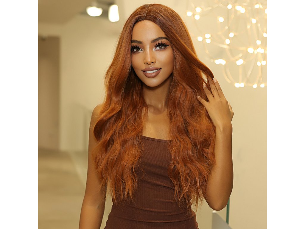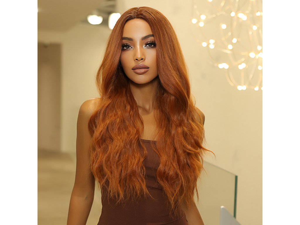 Medeno ryšavá dlhá parochňa Cora s jemnými vlnami