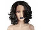 čierna parochňa LACE FRONT moderný strih mikádo vlny pôvabný vzhľad
