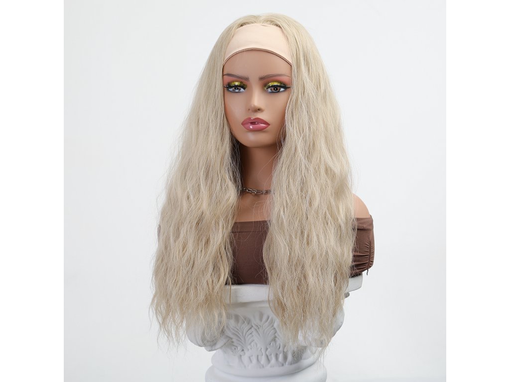 Perleťová blond vlnitá parochňa Sára s čelenkou dokonale splynie s prirodzeným prechodom vlasov!