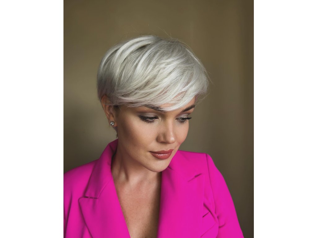 Polárna strieborná pixie parochňa z pravých a umelých vlasov Paola