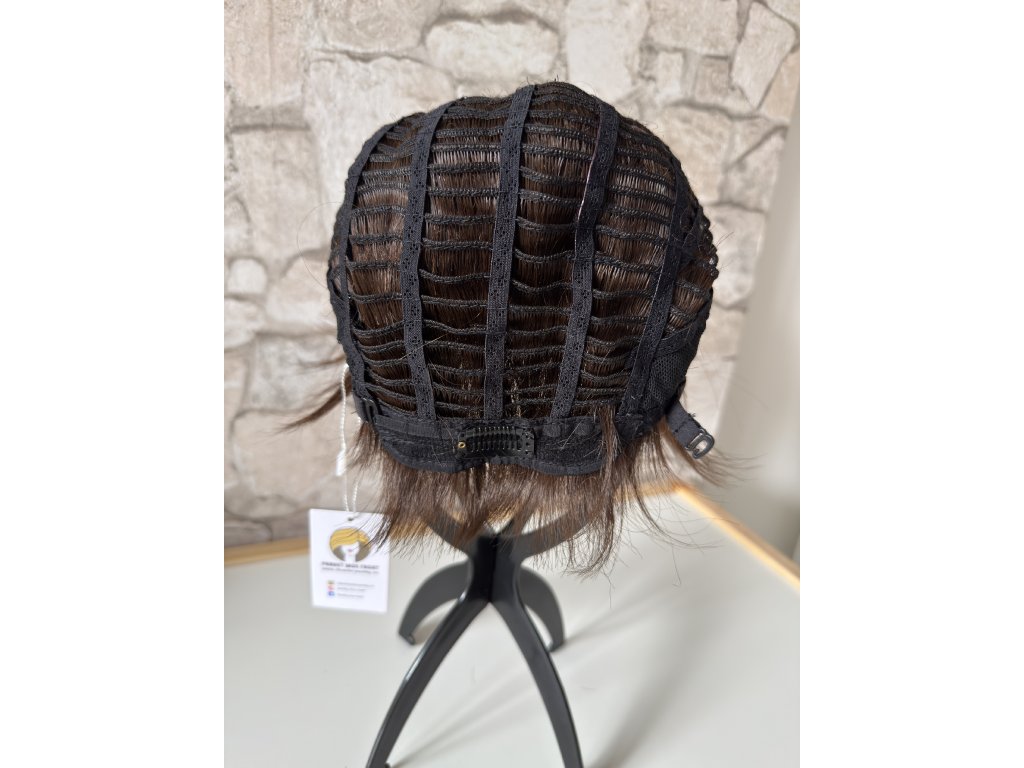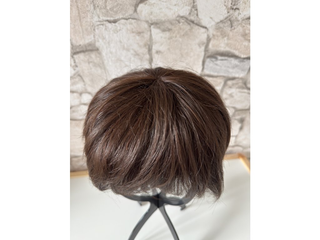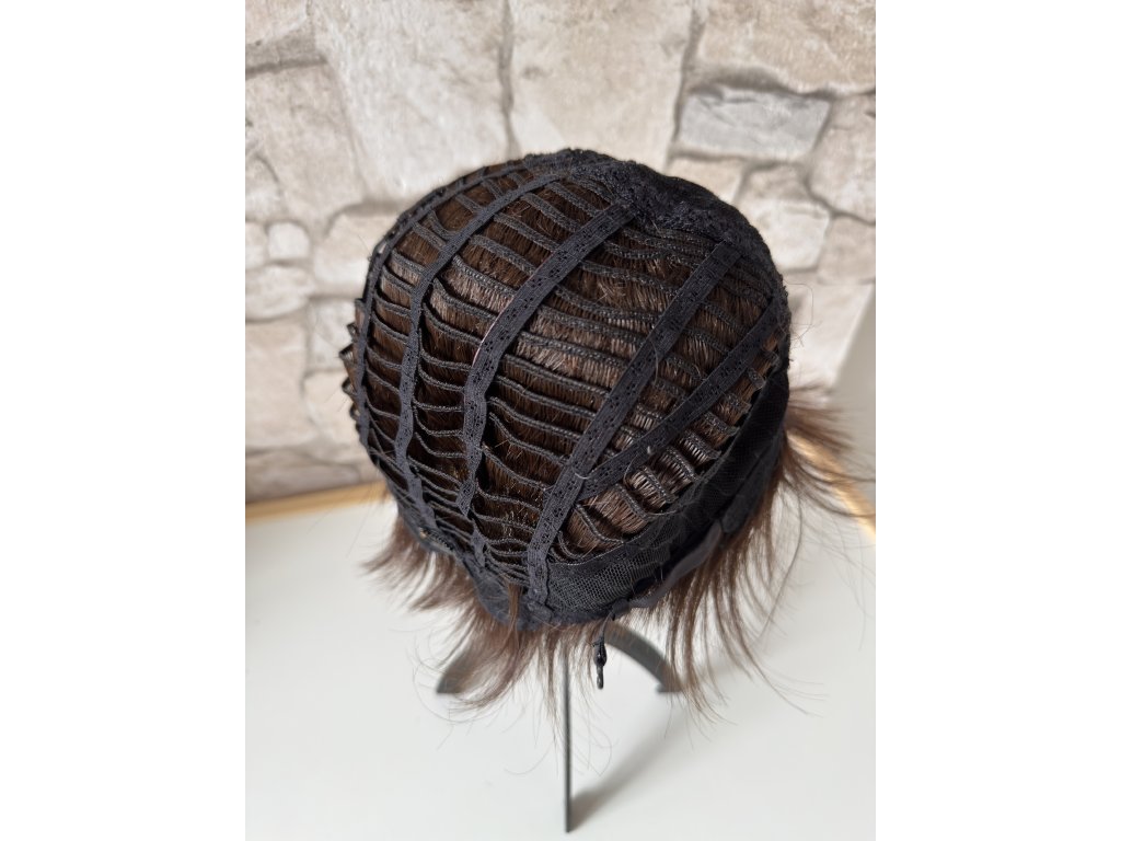 Prírodná hnedá krátka parochňa z pravých a umelých vlasov Erica s ľahkým melírovaním