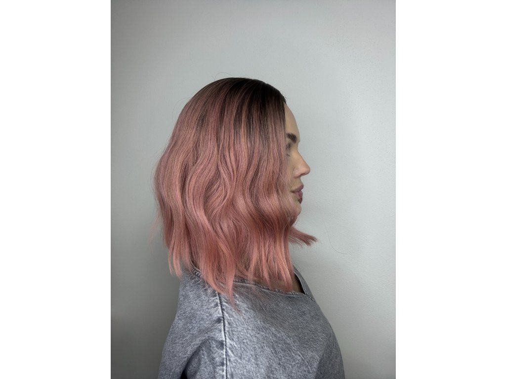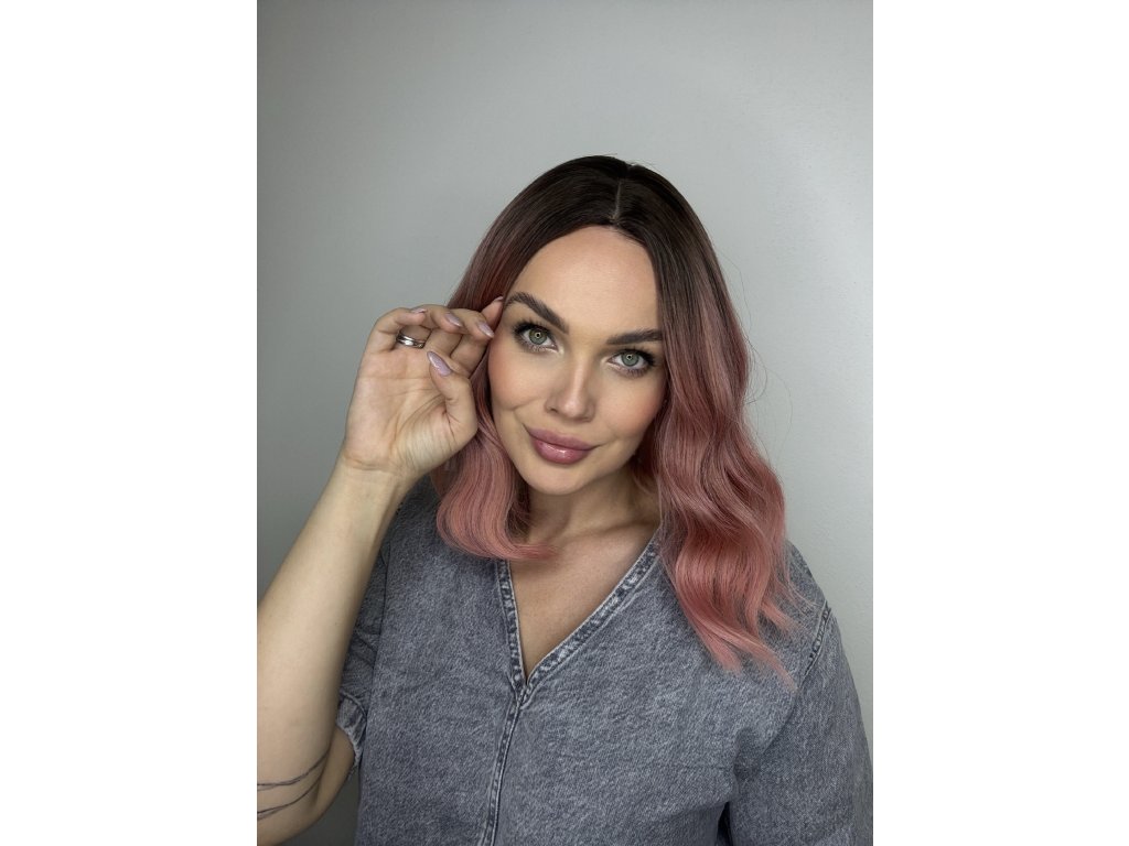 Krásna svetloružová parochňa. Mikádo strih s jemnými vlnami. Je vyrobená z kvalitného syntetického vlákna, ktoré je veľmi príjemné na dotyk a jemnosťou pripomína ľudské vlasy.