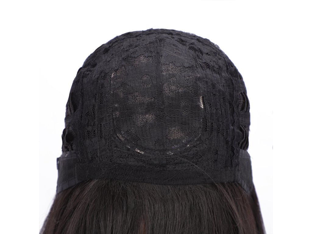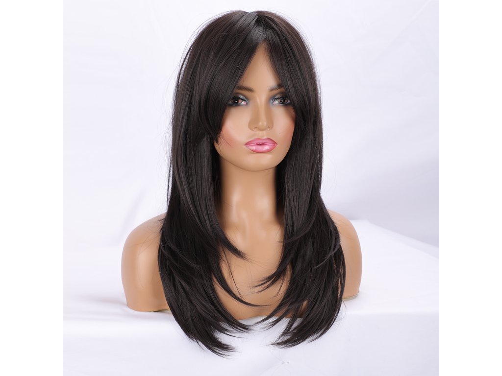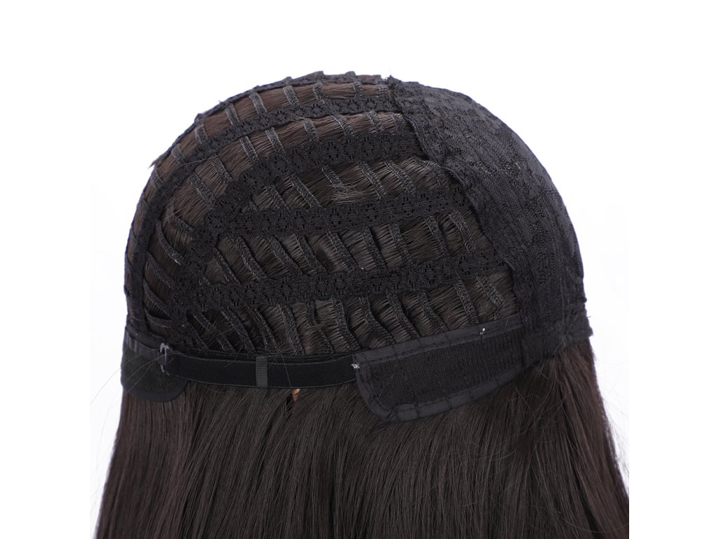 Krásna parochňa v tmavohnedej farbe a s dokonalou ofinou na obe strany. Stredne dlhé a rovné vlasy s postupným zostrihom. Je vyrobená z kvalitného syntetického vlákna, ktoré je veľmi príjemné na dotyk a jemnosťou pripomína ľudské vlasy.